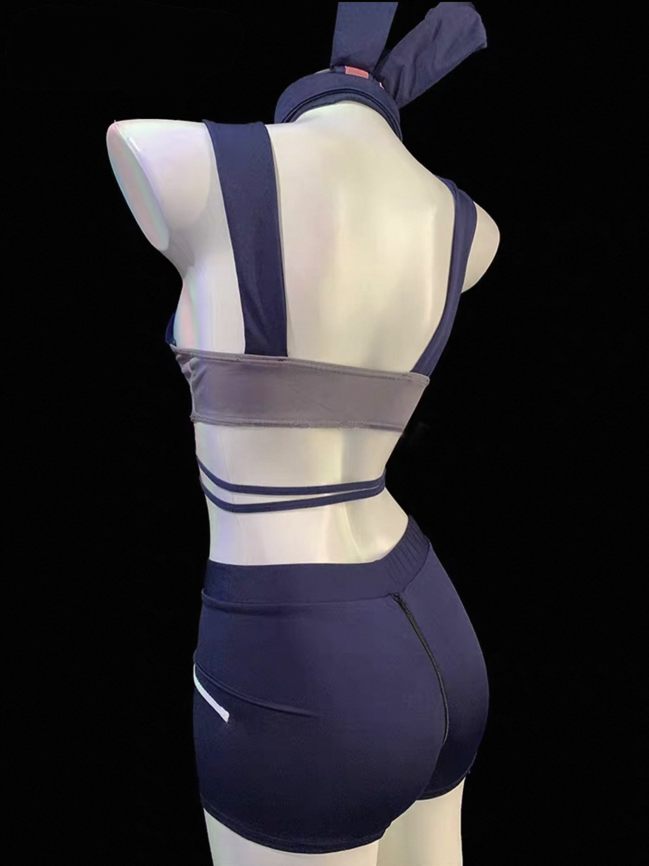 Sexy Lingerie Set – Headband, Collar, Tie, Bra, Zip Shorts & Gloves