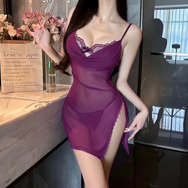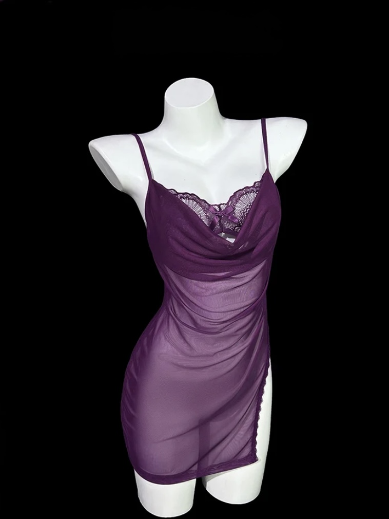 Purple Lace Sheer Slip Dress – Sexy Spaghetti Strap Lingerie