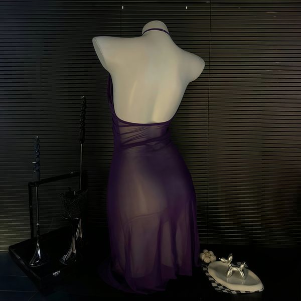 Purple  Sheer Bodysuit – Sexy Flirty Lingerie Look With Matching StockingsPurple Sheer Bodysuit – Sexy Flirty Lingerie Look With Matching Stockings