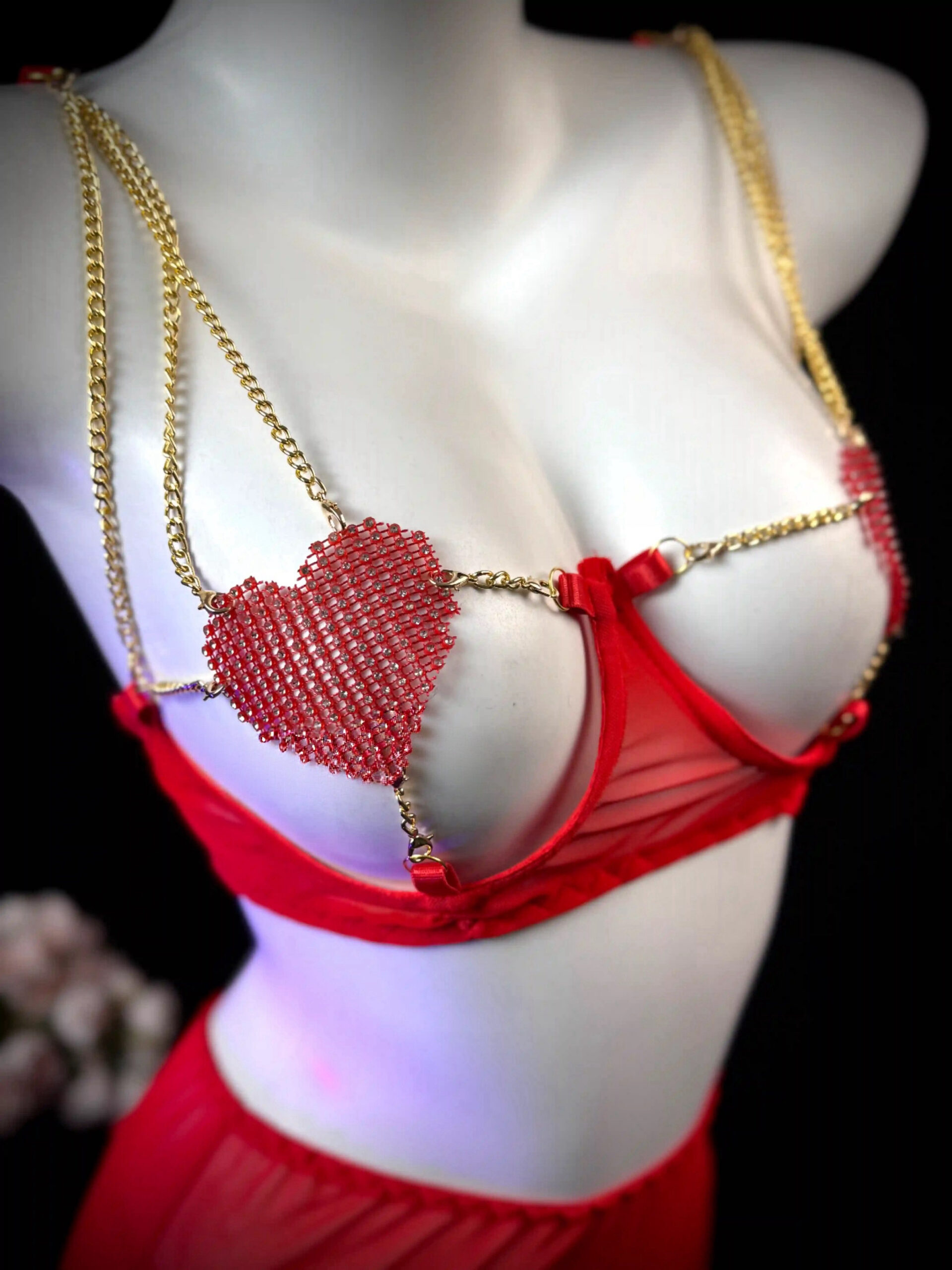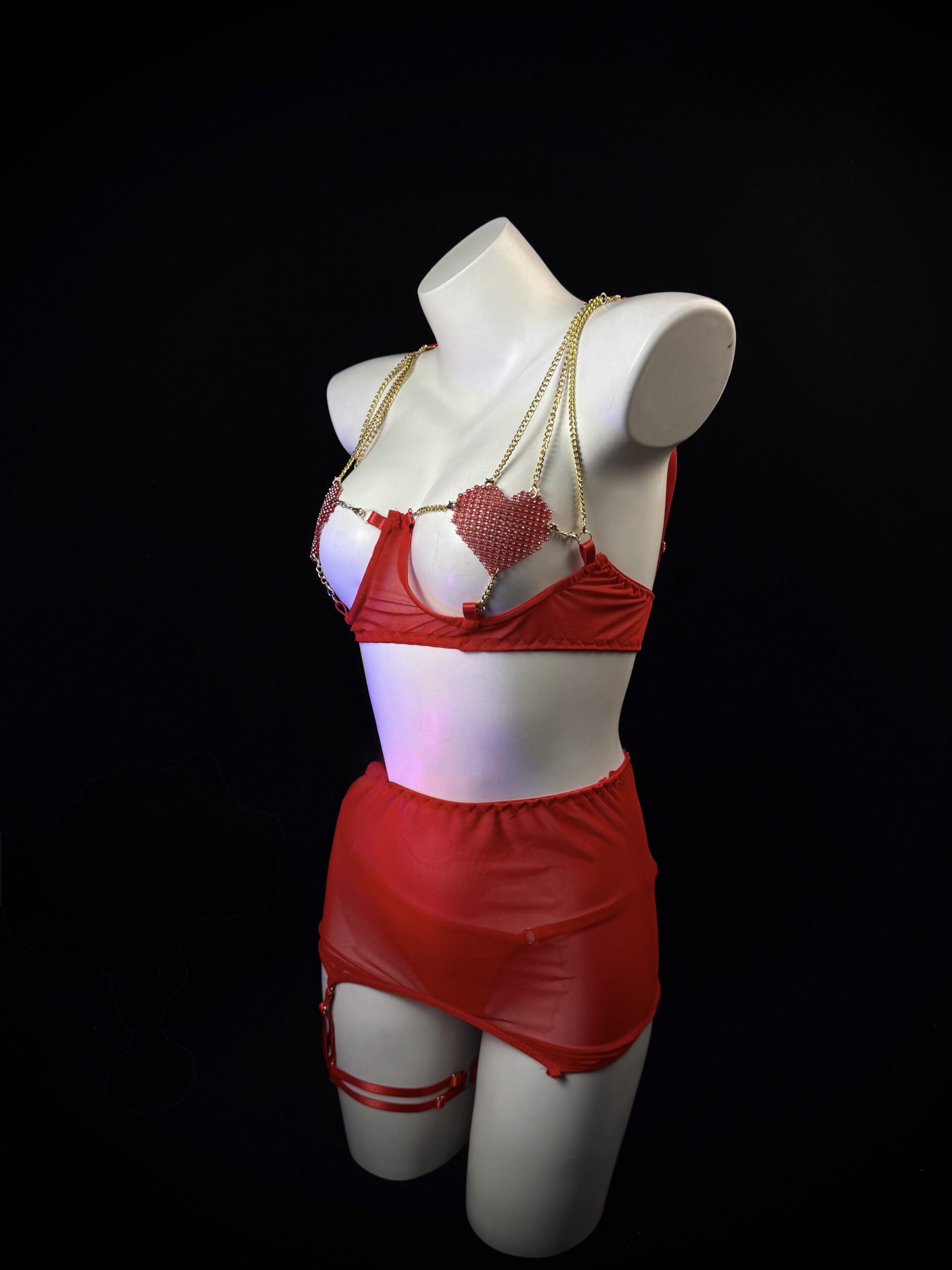 Be the first to review “Red Heart Mesh 5-Piece Lingerie Set – Romantic & Seductive Look”